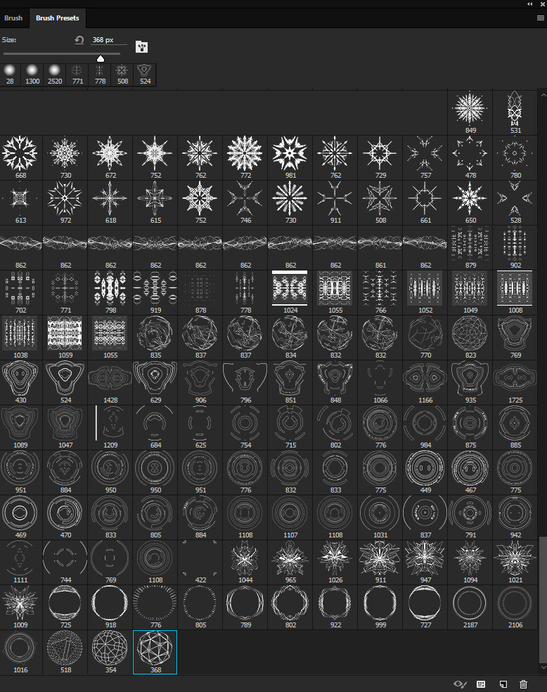 Over 130 unique brushes for creating designs with a tech like feel. These brushes can be used for creating fictional UI elements, alien symbols and more!